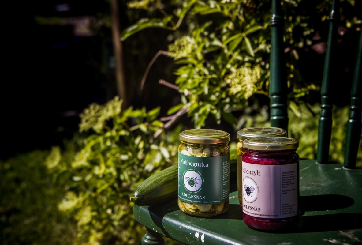Et pragtfuldt paradis er en meget passende beskrivelse af Adolfsnäs Handelsträdgård. Her lever grøntsager, bær og blomster side om side. Agurker og tomater har det største dyrkningsareal blandt gårdens 5.500 kvadratmeter drivhuse - og de er lækre! Vi fantaserer om en bruschetta lavet med gårdens tomater og basilikum og en god olivenolie. Namnam! Lige nu i midten af juni er der en hektisk aktivitet, og tomaterne vokser, så man næsten kan se dem med det blotte øje, siger Zandra, datter af Meijer-familien (som driver Adolfsnäs). Meijers har haft gården i hele 30 år, så der er stor erfaring med at dyrke planter, grøntsager og bær - man kan se, at der er en stor passion for håndværket.