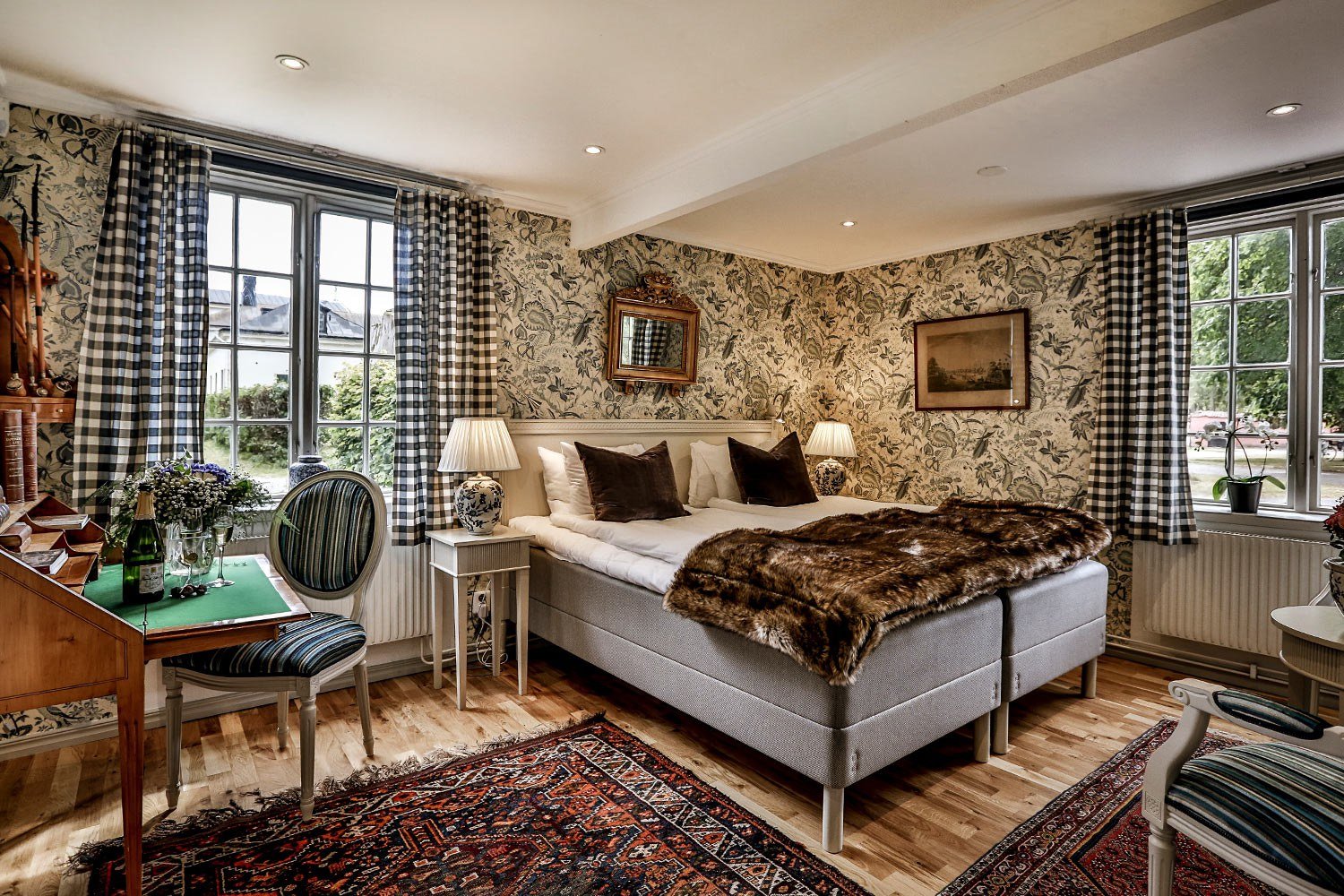 Nyrenoverede værelser med svenske indretningsdetaljer - fra tapet og gardiner til badeværelsesgulve og sengerammer - velkommen til Klostergården