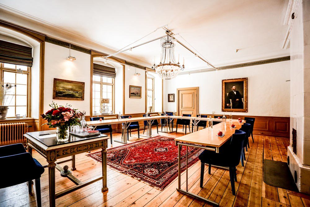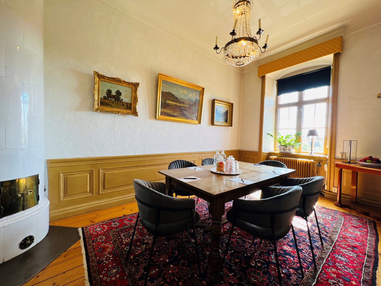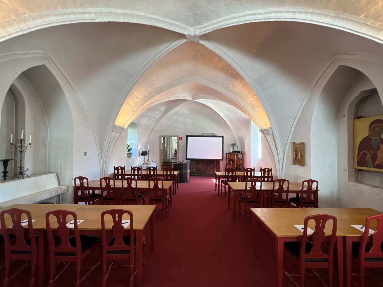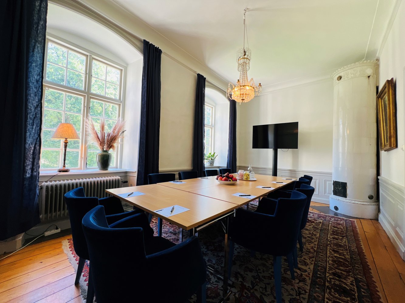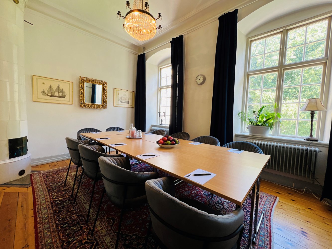 Ligger i hovedbygningen på Restaurant Munkklostret, på anden sal ved siden af salonerne fra det 18. århundrede, perfekt til gruppearbejde og kaffepauser.