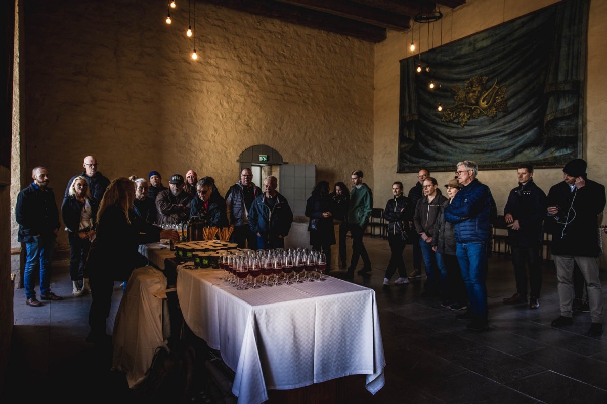 Så var det af sted til klosterhotellet og indcheckning på værelset. Vi fik en snak snakkede med Felix i receptionen - som så blev til hertug Magnus Magnus, da ølbanden samledes i solskinnet uden for Klosterhotellet, himmelsk smuk fyr! Hele banden gik til fods til slottet, hvor vi blev mødt af Jeanette, som lod os prøve flere forskellige øl med snacks, hun var godt belæst historie om drikkevarer, og smagningen blev også vekslet med historien om hertugen Magnus, som guidede os rundt på slottet. Marita kunne bedst lide jeres klosterøl Birgitta mest, og jeg er tilbøjelig til at være enig, den sure øl voksede med os begge, men så sammen med en strålende sol og 30 grader, haha.